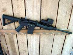the aluminum railed hand guard, a Magpul adjustable buttstock,