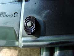 bolt carrier. The stock has no AR-style buffer tube, but the