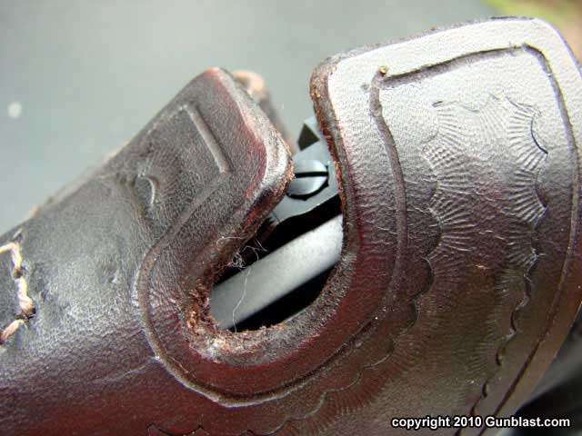 The leather is molded to fit the weapon, but still allows a