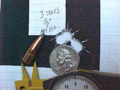 grain Hornady grouped right under 5/8 of an inch for three shots, and 1 3/8 inches for a