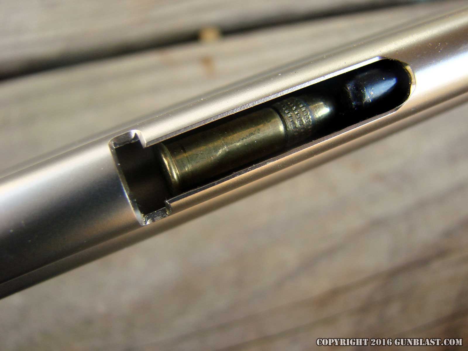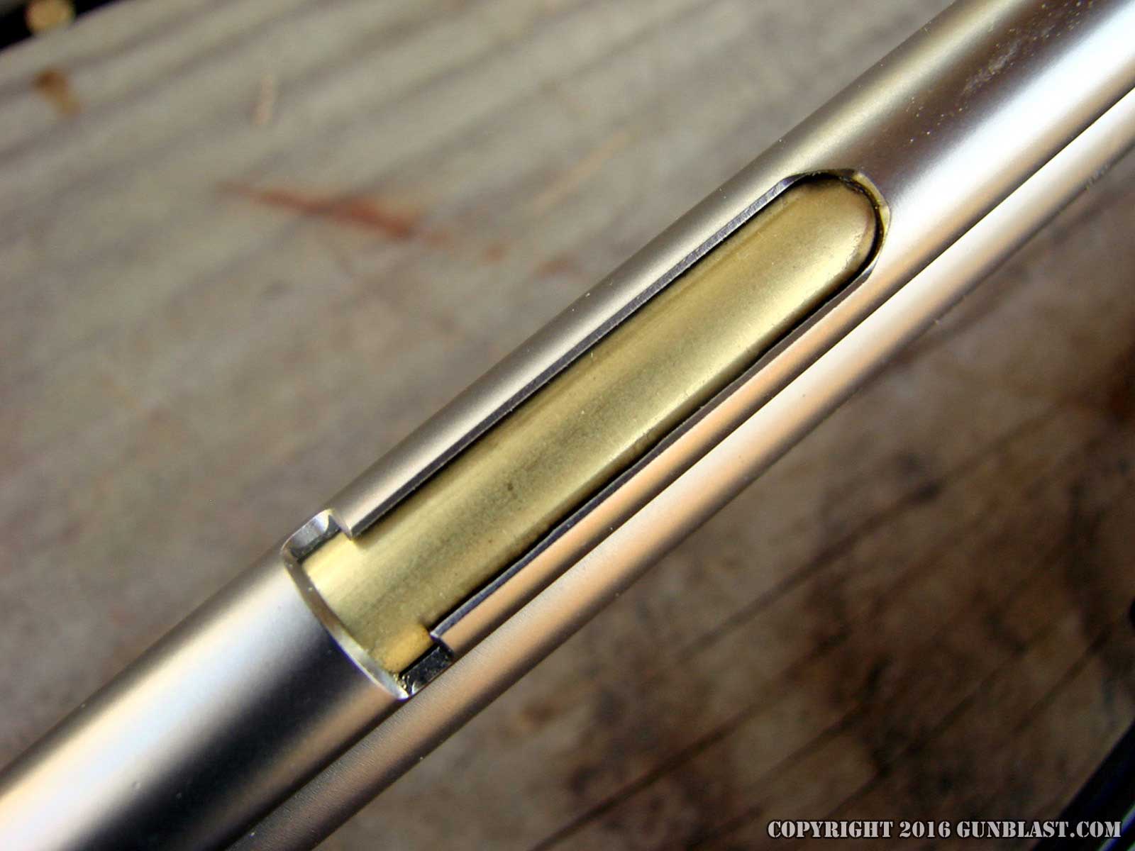 from the fifteen-shot magazine tube into the chamber. Also, the