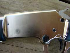 and has a matte chrome finish on the receiver, lever, mag tube,