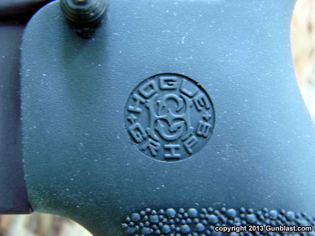 over-molded pistol grip. The one shown bears the Hogue logo, but