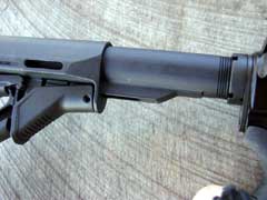 sliding on a mil-spec buffer tube. The pistol grip is a Magpul