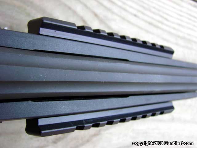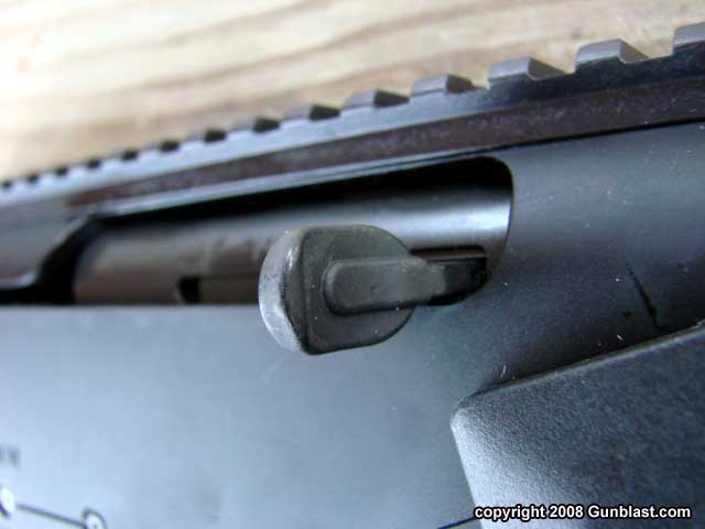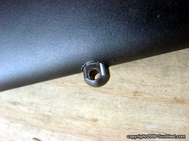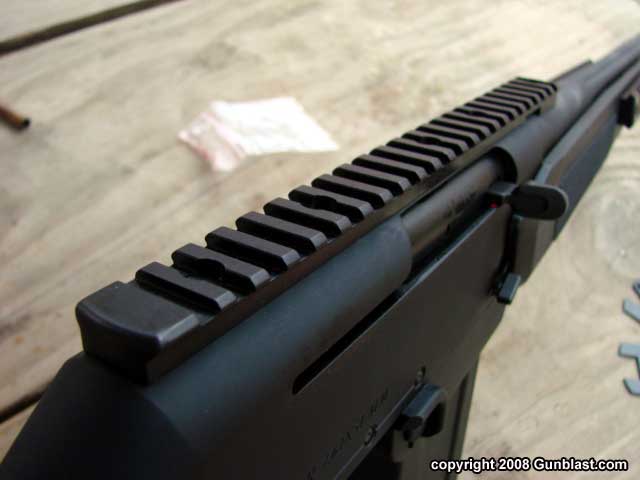 attachment of a sling. Atop the receiver is a Picatinny rail