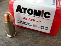 New-to-me is this Atomic 230- grain JHP load, which performed well.