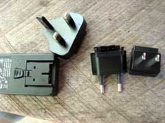 rechargeable battery, and comes with adaptors to charge in an
