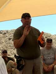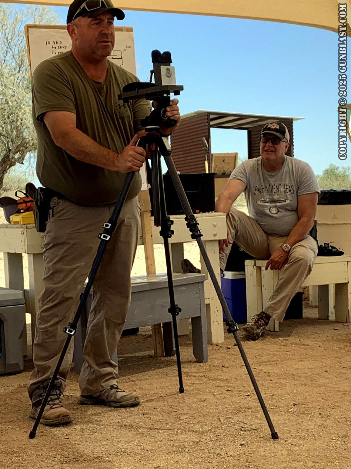One of the most important steps to a pleasant, and responsible, shooting experience, whether with iron sights or pistol mounted optics, is a proper zero. On the first day, Jim Owens provided some basic instructions and process for zeroing. Jim is a firm proponent of a 25-yard zero and, in fact, has developed his own tripod zeroing device using a Ransom Rest Multi-Caliber rest mounted on a Manfrotto tripod. This gives a very sturdy, stable, yet adjustable, platform for holding the pistol steady and made zeroing the pistols a fairly simple task. Of course, it helps when the Glock pistols are already zeroed at the factory, a nice feature, as three pistols that we checked for zero early before the first day were already zeroed almost perfectly at 25-yards!