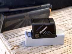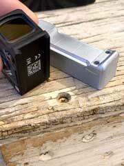Introduced at SHOT Show in 2025, the new enclosed emitter Aimpoint COA red dot optic was designed for concealed carry pistols and is the next generation of pistol mounted optics. This miniaturized red dot optic is designed to be direct mounted using a proprietary cut, called the A-cut, allowing the housing to be snapped in place on its locking lugs, and then locking in the back with a screwed in wedge which also serves as a backup iron rear sight. Being directly mounted to the slide, the optic sits lower in the slide itself, not only resulting in the ability to use standard height sights, but also resulting in a smaller mechanical offset for point of impact to point of aim. In fact, almost all pistols shot in the class showed an offset of only about 3/4" at 3-5 yards. Another benefit is that the lower mounted optic helps shooters see their dot a little more easily and quickly.