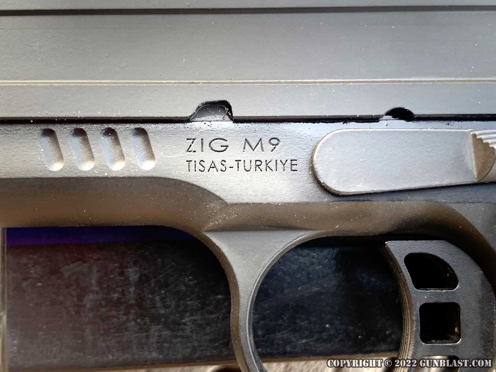 size, 1911 semi-automatic pistol chambered in 9mm.