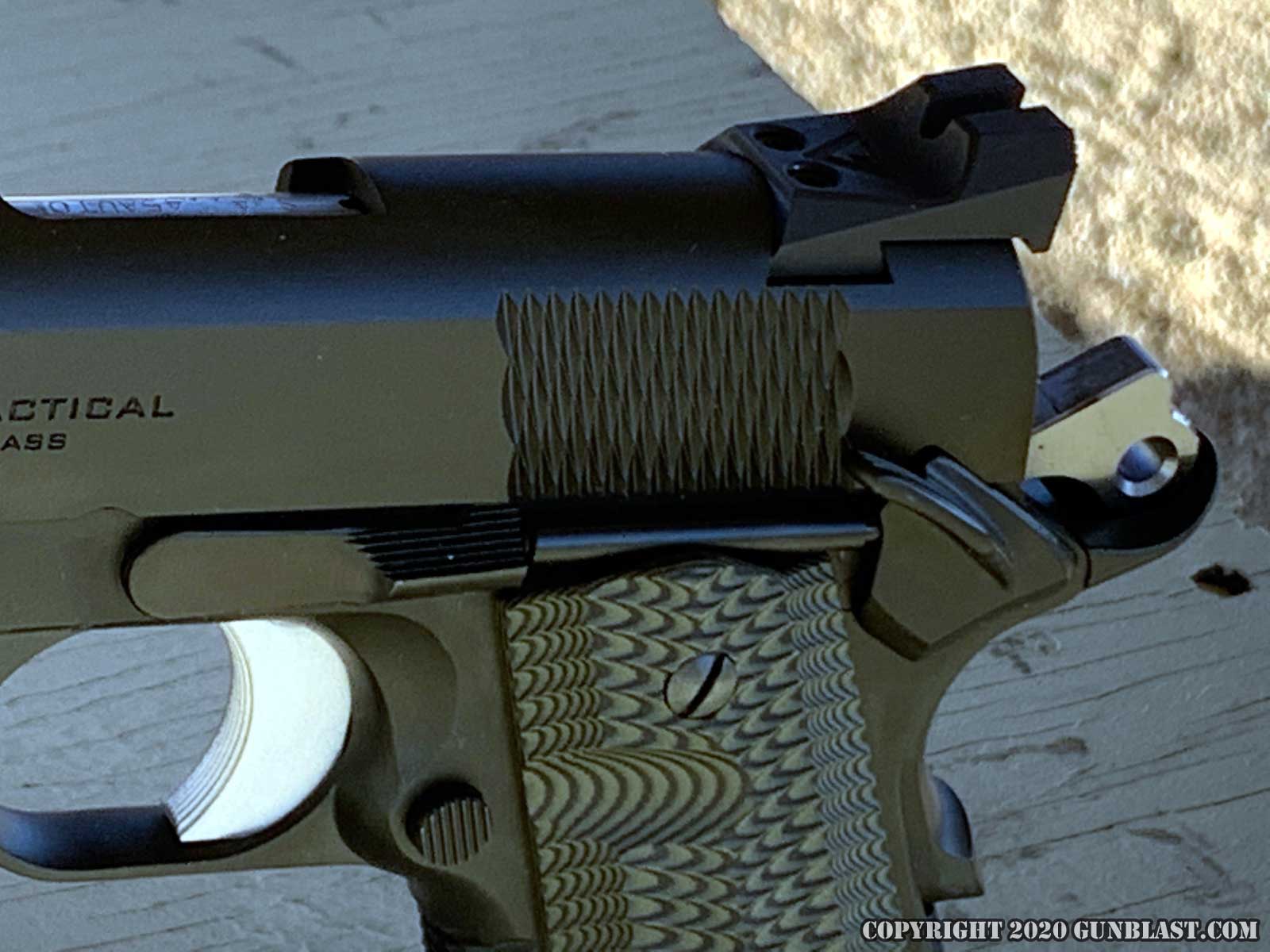 getting, and keeping, a firm grip on this pistol. Springfield used the same serration pattern as on the front