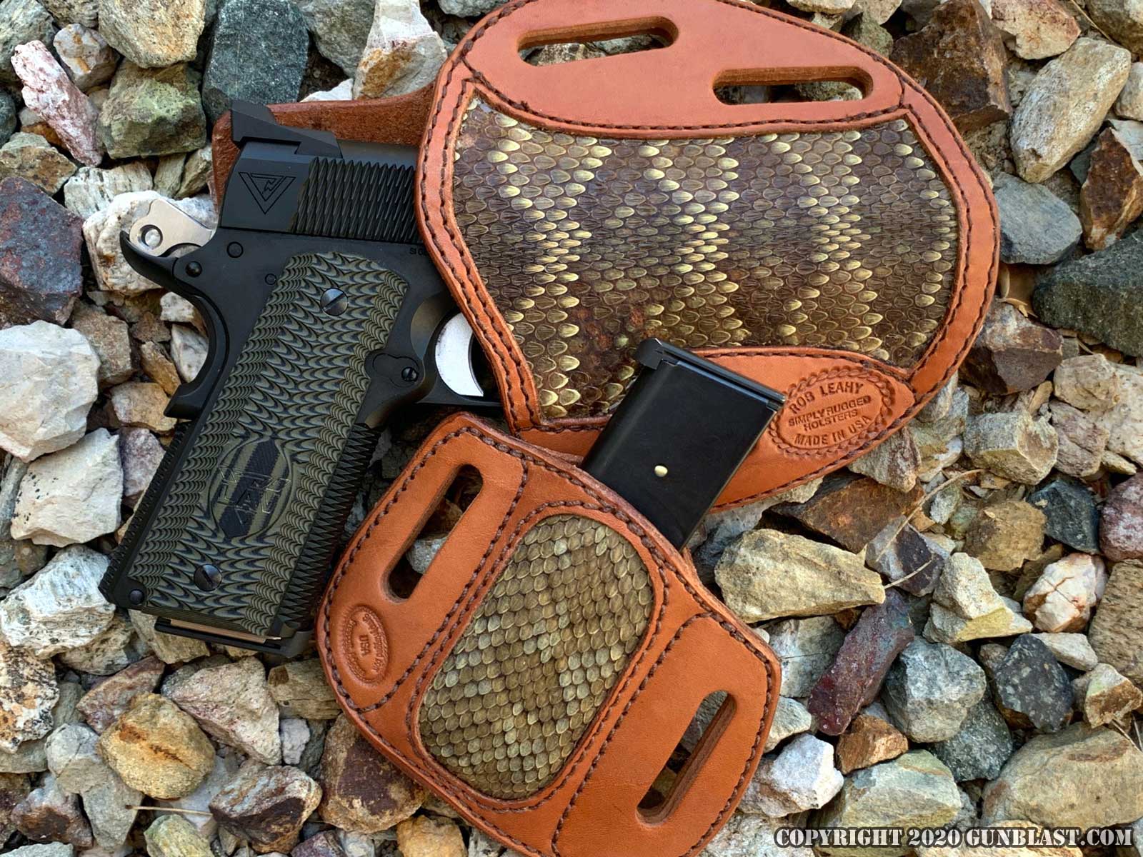 holster and mag pouch with green Mojave rattlesnake inlay.