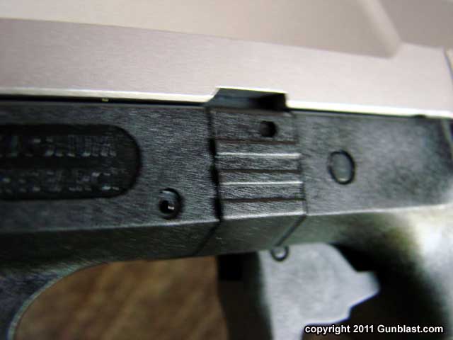 Atop the slide is a decocker, to undo the pre-cocked condition.