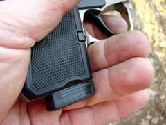 well-suited for use with a gloved finger. The magazine release