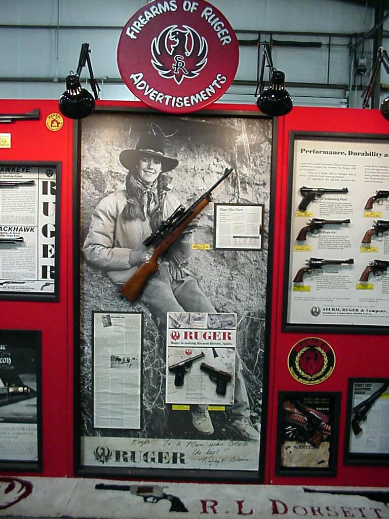 Assorted Ruger ads include an ad for the Mini-Thirty semi-auto rifle, autographed by the model