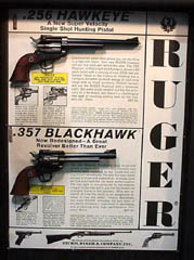 Ruger handgun lineup, clockwise from top left: .22 Autoloading Pistol, .22 Bearcat, Blackhawk, .357 Magnum Security-Six DA revolver, .44 Magnum Super Blackhawk, .22 Single-Six