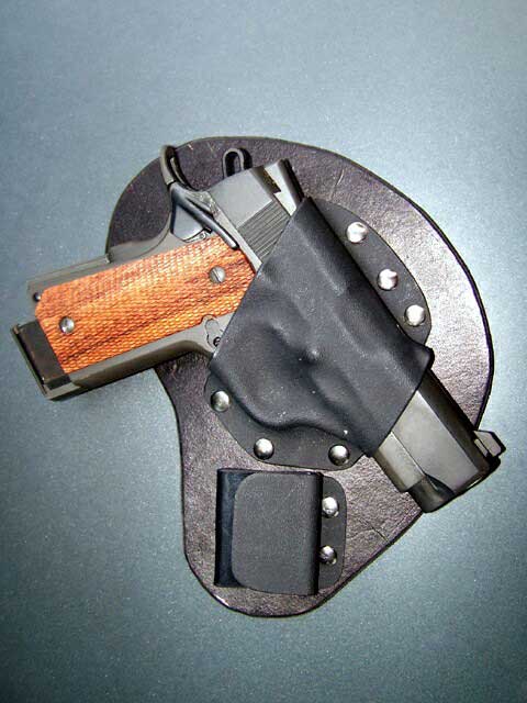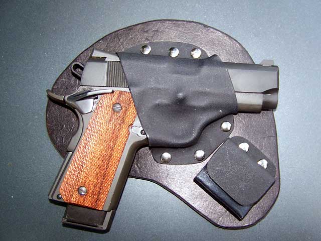 that, a cross between rigid Kydex for retention and leather for