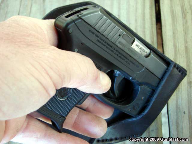 Ruger LCP holstered in front pocket shows