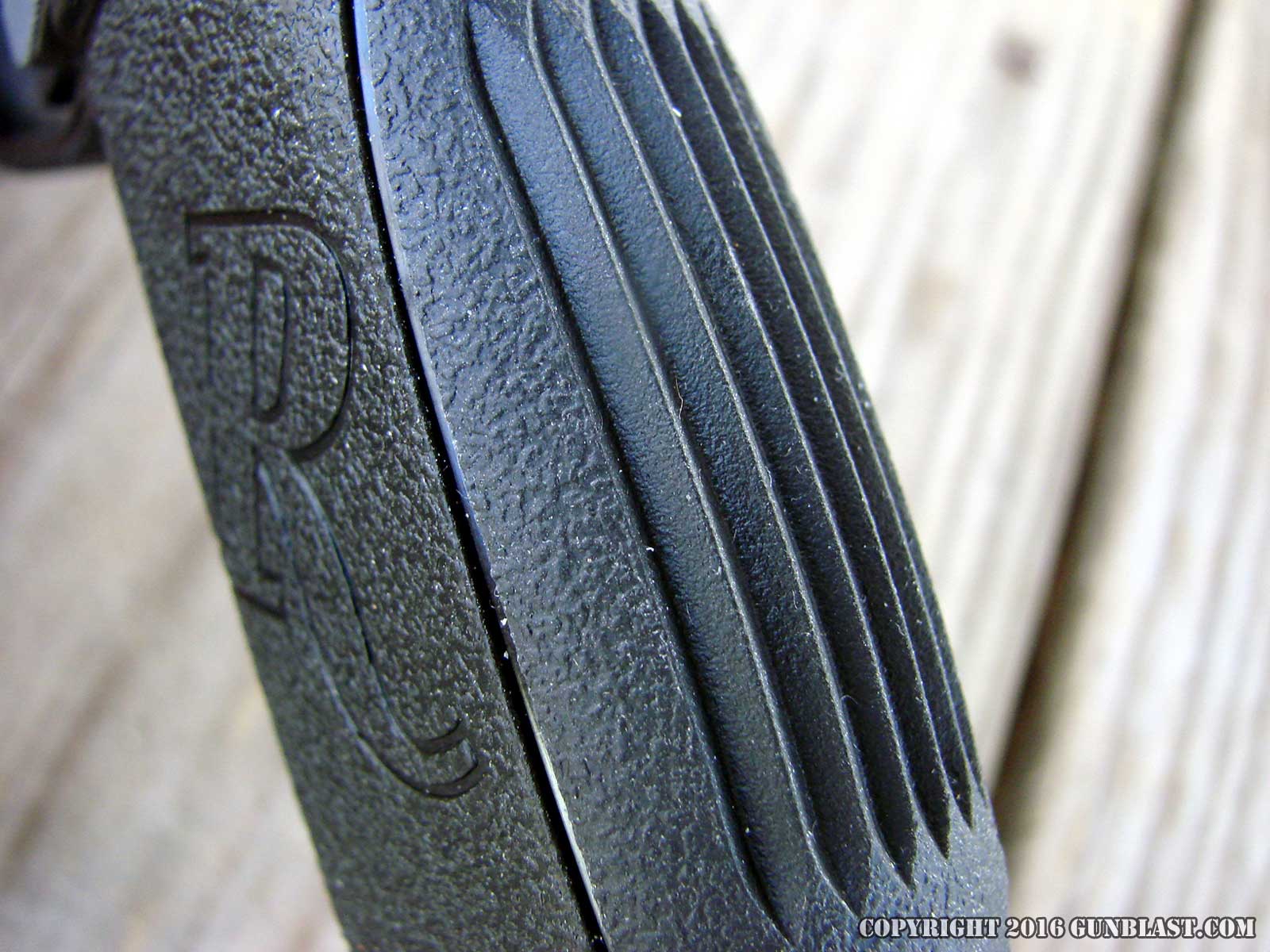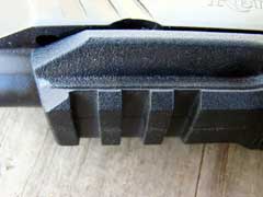 grasp, and is serrated front and rear to assist in racking