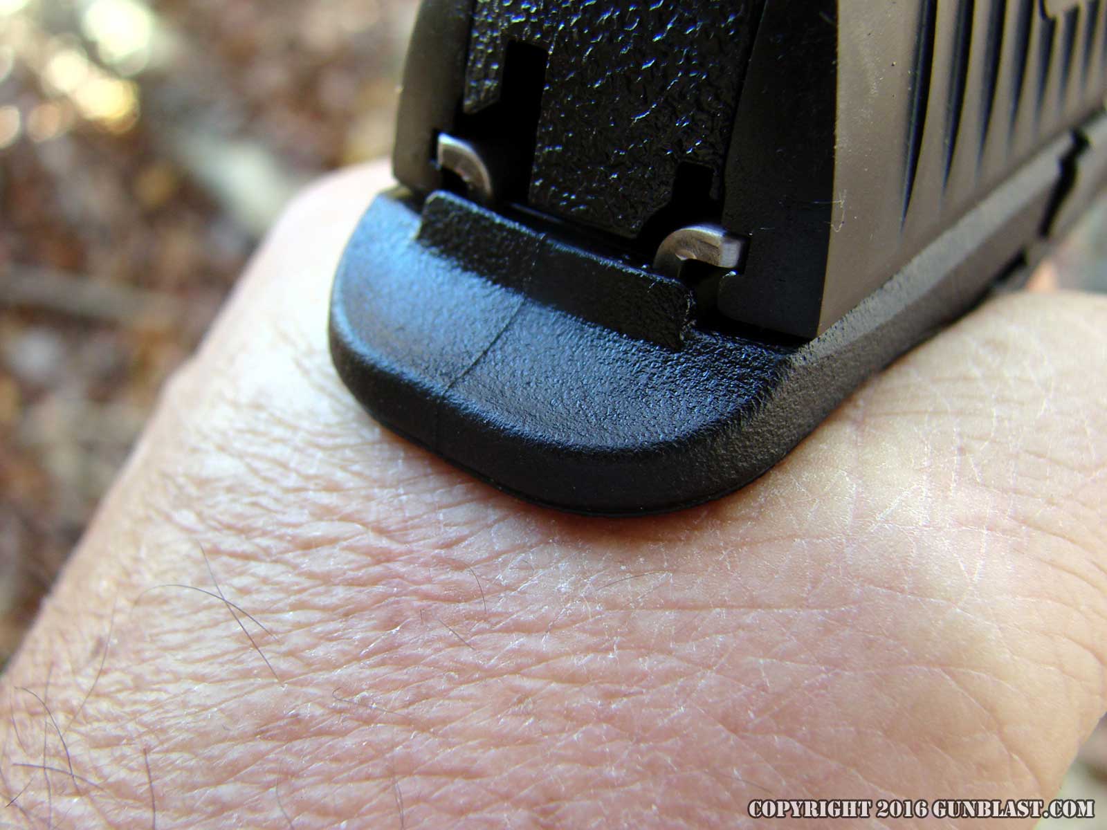 magazine base with the magazine in place. Maximum grip width is