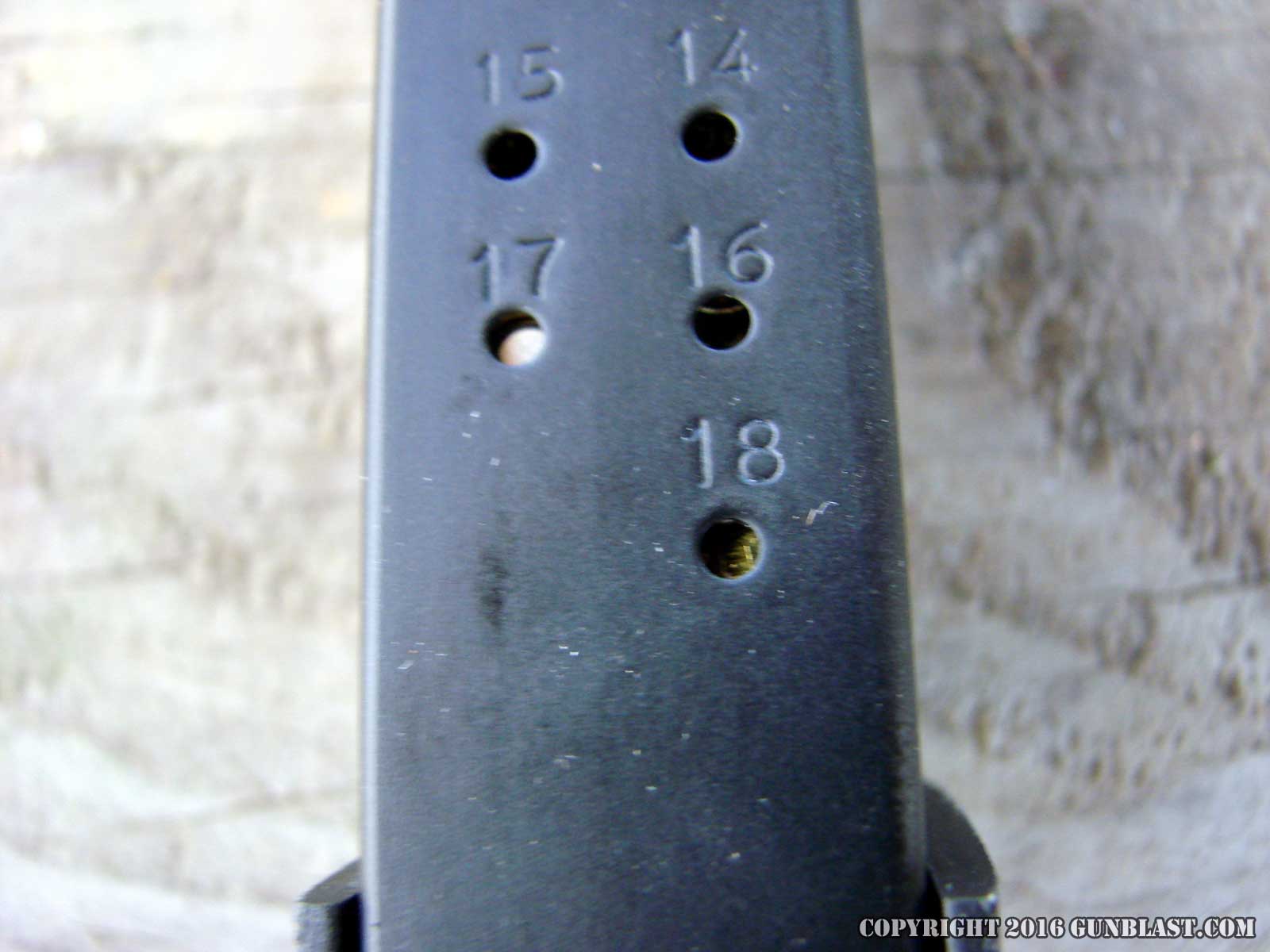 double-stack magazine that holds eighteen 9x19mm cartridges, for
