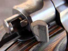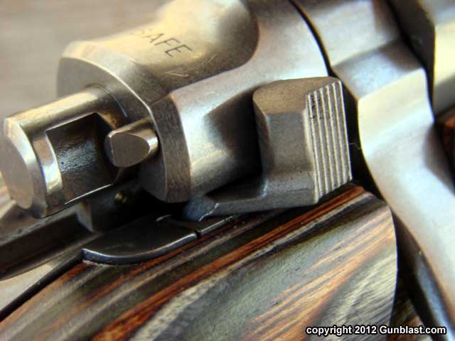 safety is a three-position lever that swings horizontally