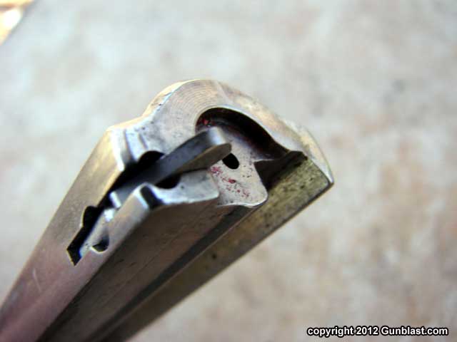 locks the bolt in place. The magazine is Ruger’s rugged and