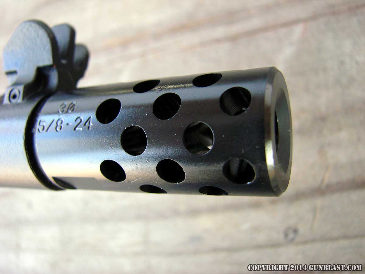 The medium weight barrel is rifled one turn in ten inches, and measures 1.15 inches diameter at the receiver, tapering to .64 inch just rear of the front sight. The muzzle is threaded standard 5/8x24 TPI for attachment of the removable brake, or the addition of a sound suppressor, if desired.