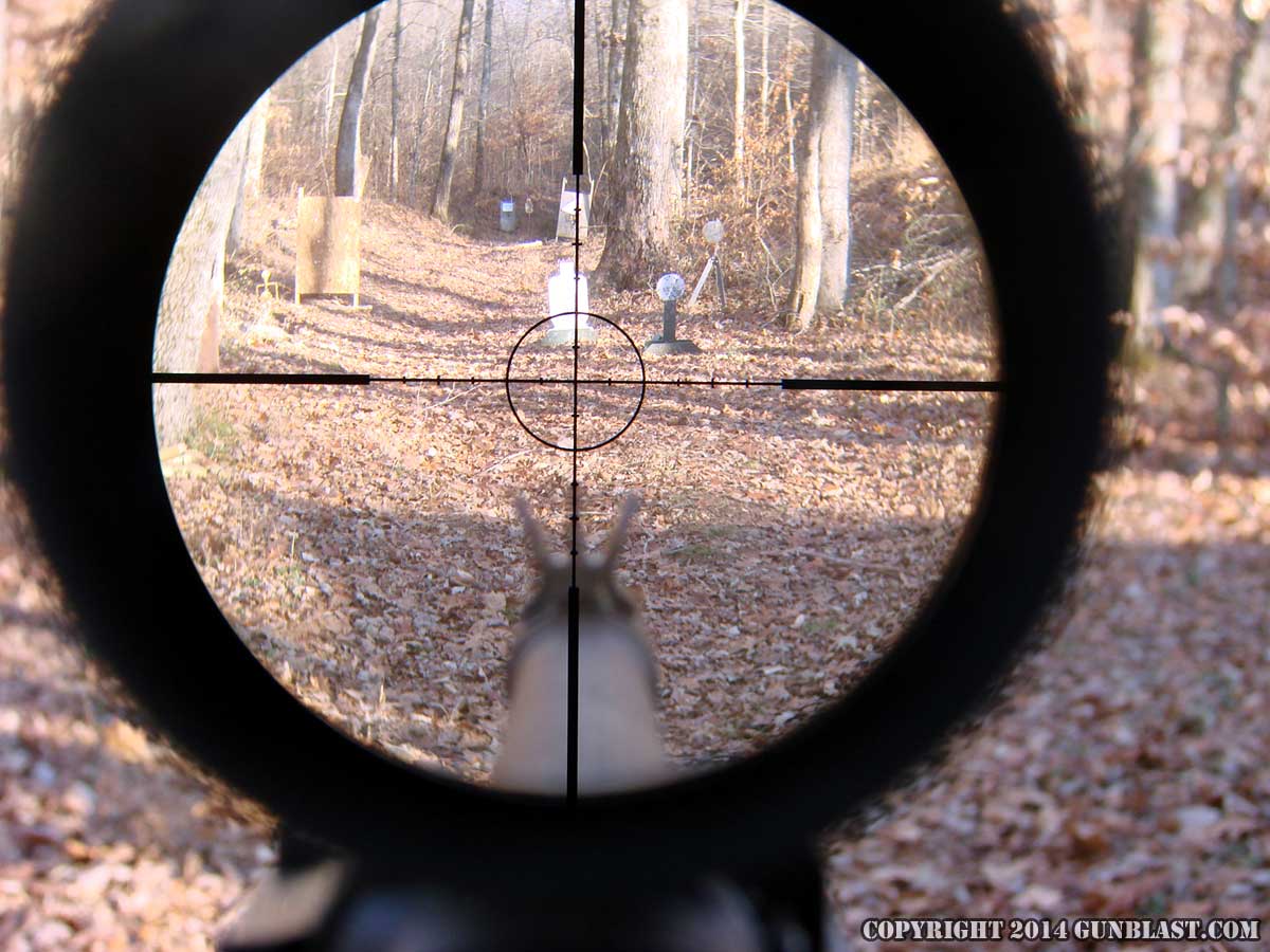 After accuracy testing, I removed the target scope and mounted my 2.5 power Leupold Scout scope forward of the receiver on the Picatinny rail. This type of scope mounting fits with Jeff Cooper's original plan, but I greatly prefer a scope mounted atop the receiver myself, so I swapped the Scout scope out for a Leupold VX-6 in 1 to 6 power. Set at no magnification, or even at 2 power, the VX-6 allows for shooting with both eyes  open, for a wide field of view, but the scope can be quickly cranked up to six power for longer shots, if needed.
