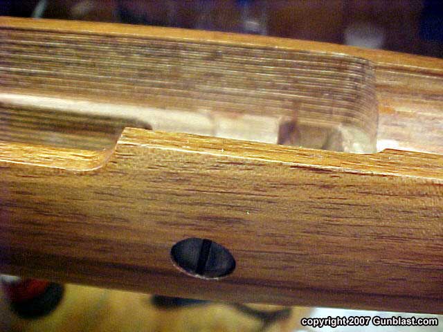 Angled receiver screw secures the action to the stock.