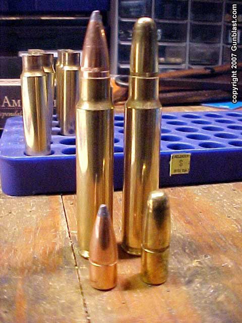 Cartridge case comparison: .375 H&H Magnum (left),