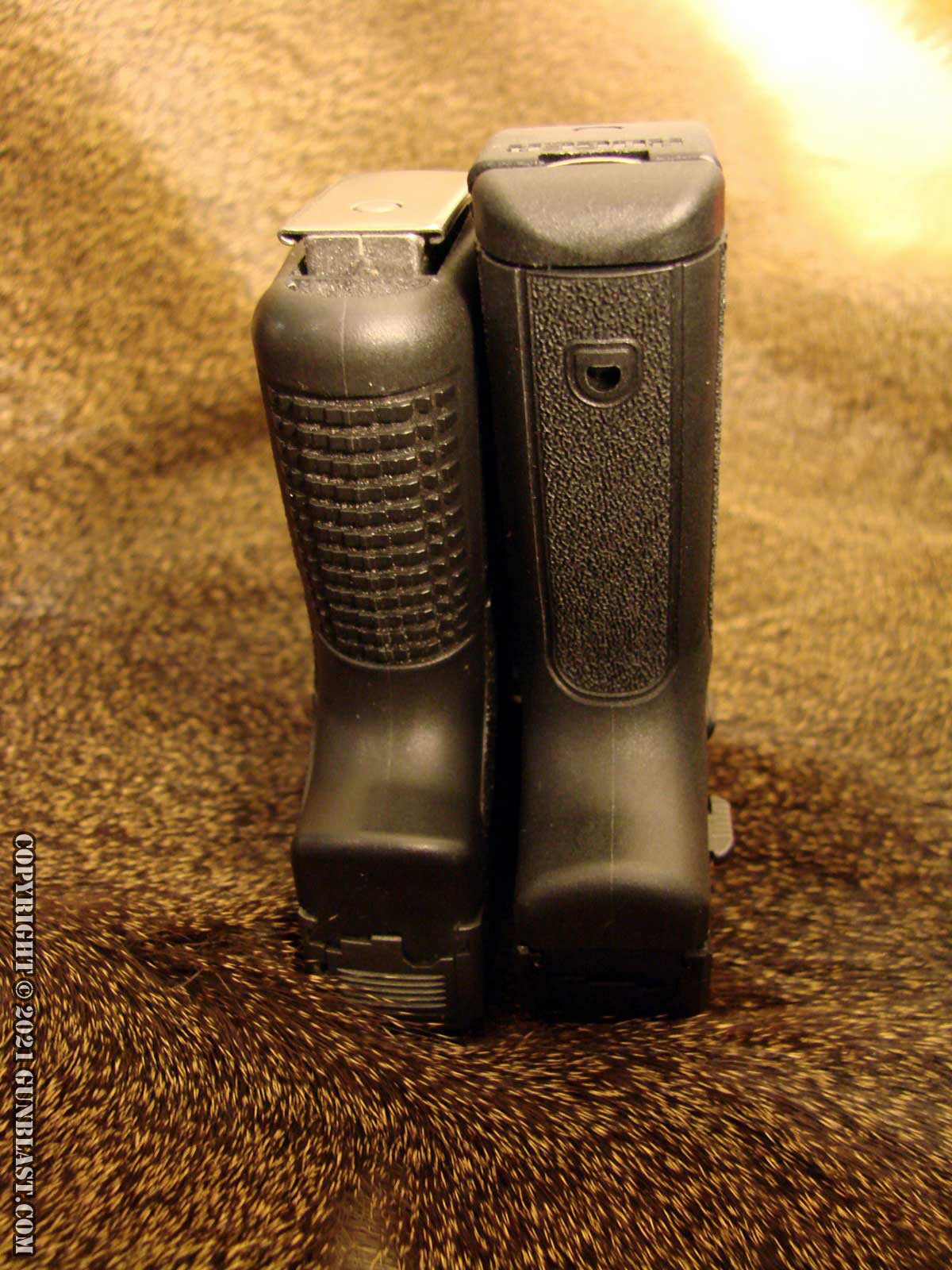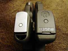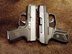 Size comparison: 6-round Kahr CM9 (left), 12-round Ruger MAX-9 (right).
