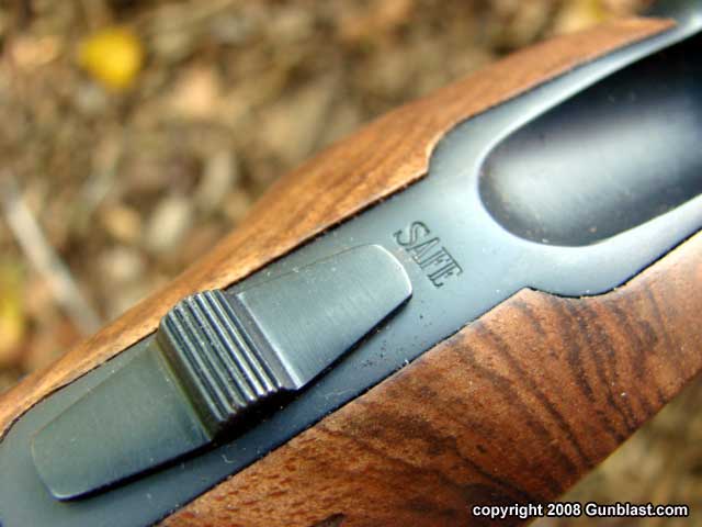 Safety is mounted on the top tang as it should be, but empty cases can catch on the safety upon ejection.