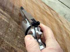 spur is checkered for a positive grip for cocking the Redhawk