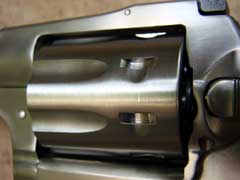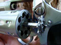 cylinder, on the left side. Ejection of spent cartridges is