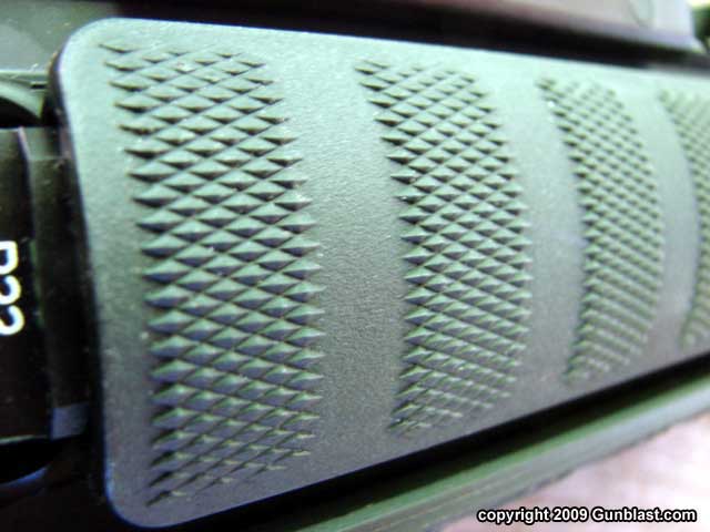 Pistol grip is a comfortable Hogue unit.