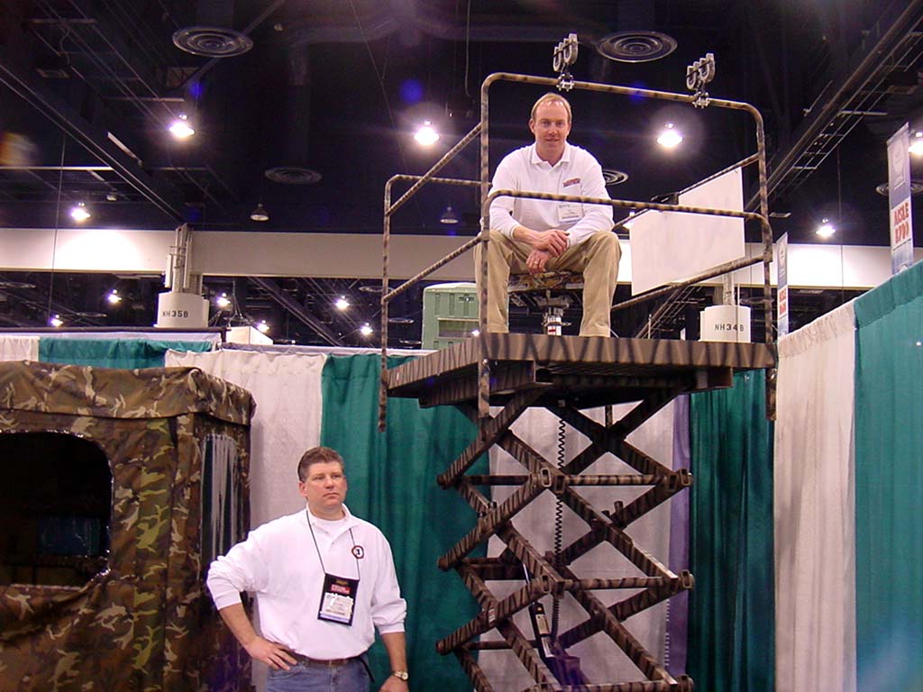 demonstrate their electric lift deer stand system. |