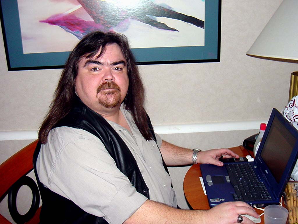 Boge hard at work at the hotel, updating the web page.