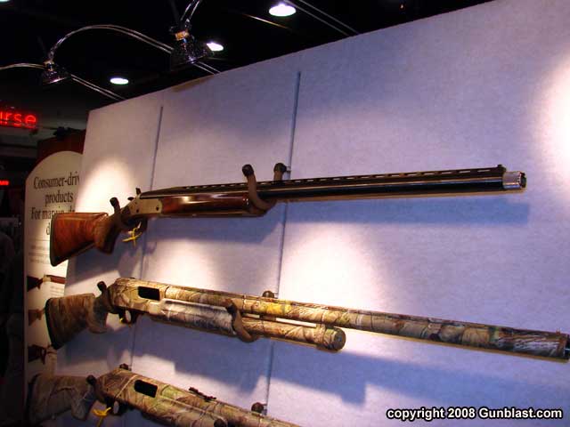 rifled-barrel slug shotgun with thumbhole stock.