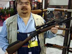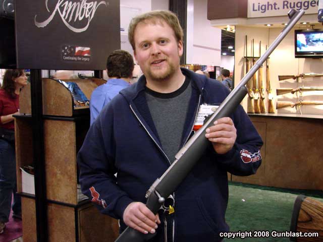 reader Aaron Riesen with Kimber's African big-bore rifle. |