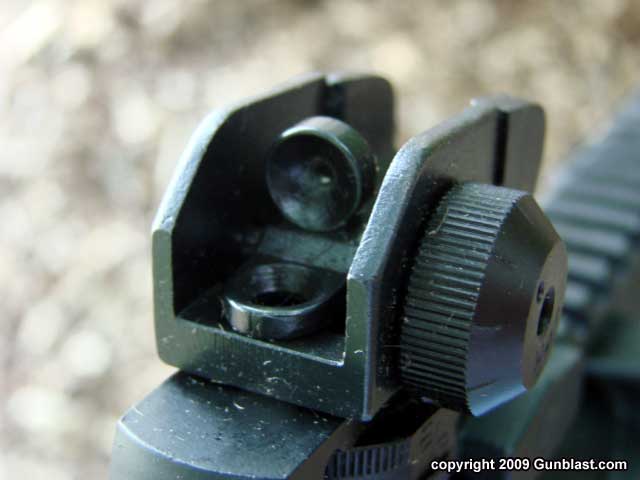 the excellent, fully adjustable A2 style aperture sights, which