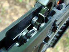 polymer. The bolt rides smoothly upon steel rails, and the