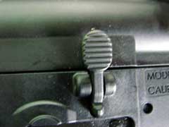 style flash suppressor attached. The lower receiver controls are