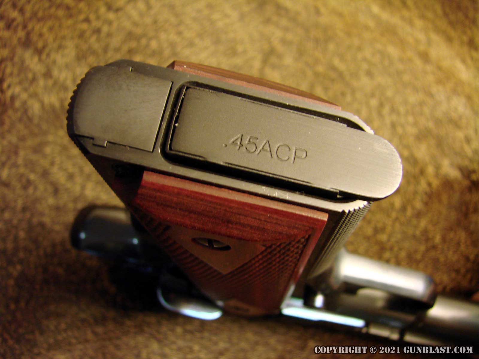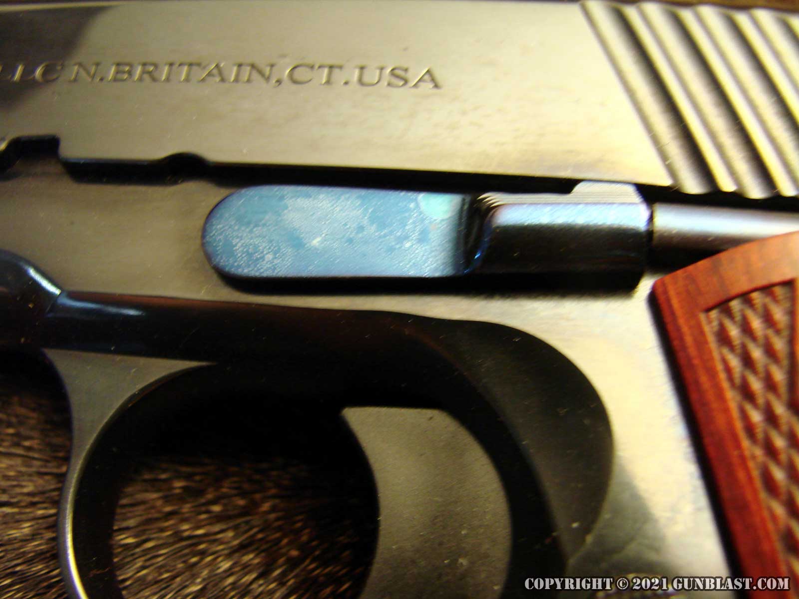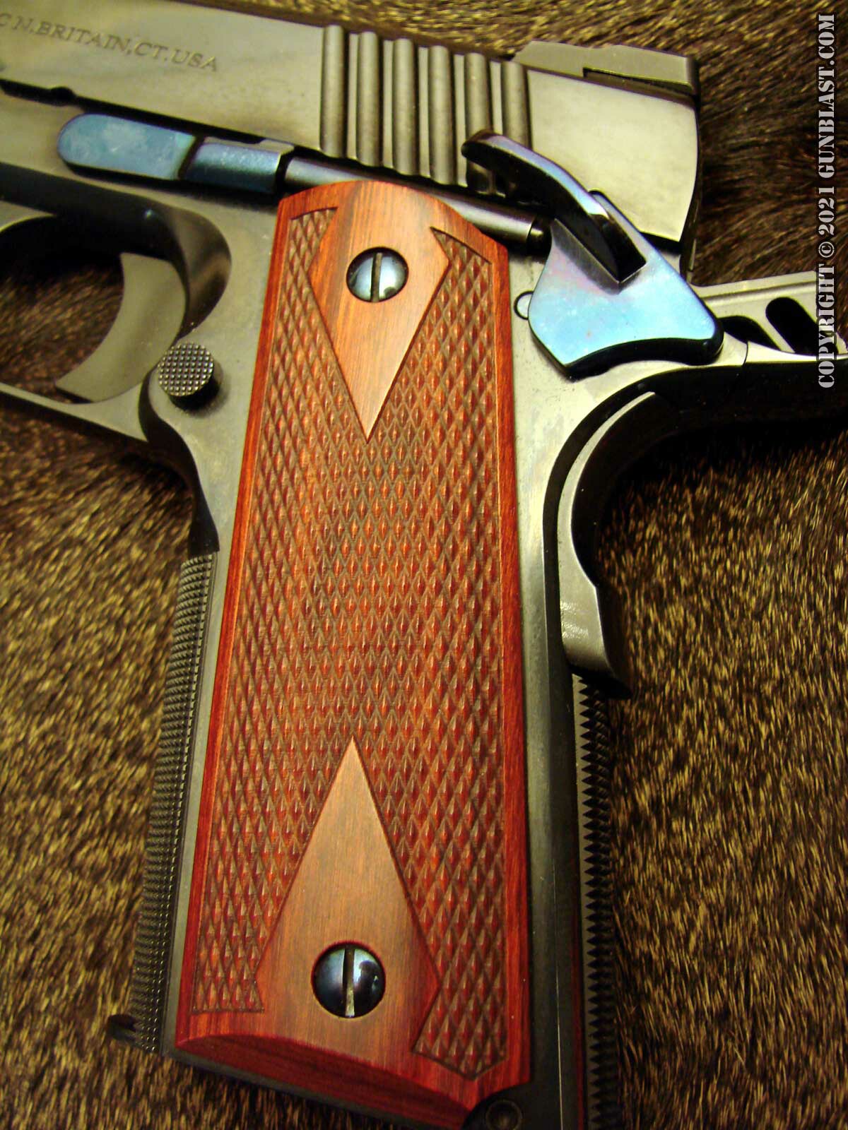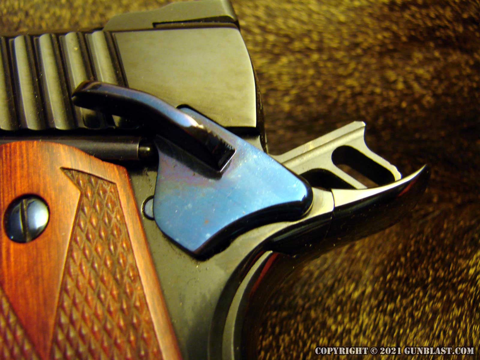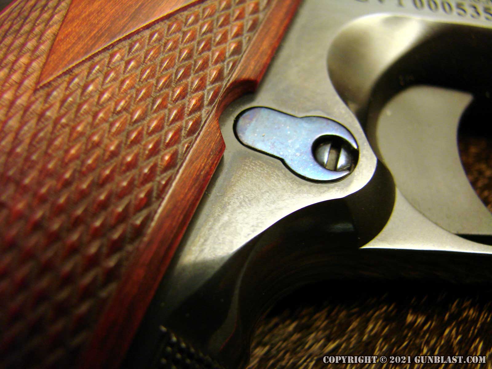 The 1911's frame is checkered on the front of