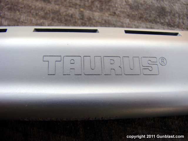 Taurus double-action revolver. It wears a heavy-profile barrel,