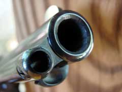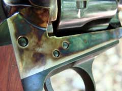sixguns. Firing the Frontier hand-held resting upon a Target