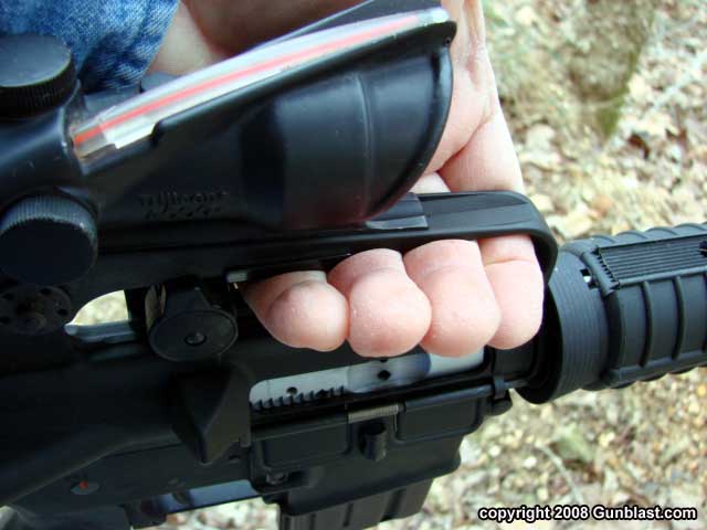 Picatinny rail. With an ACOG on the carry handle, the standard