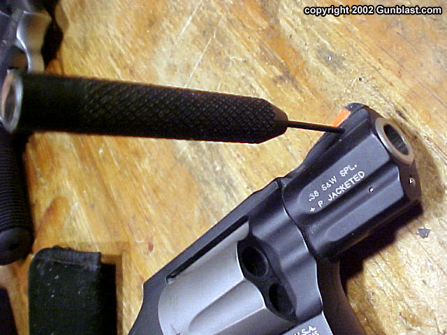 is easy to install on the J-frame Smith. The front sight pin is